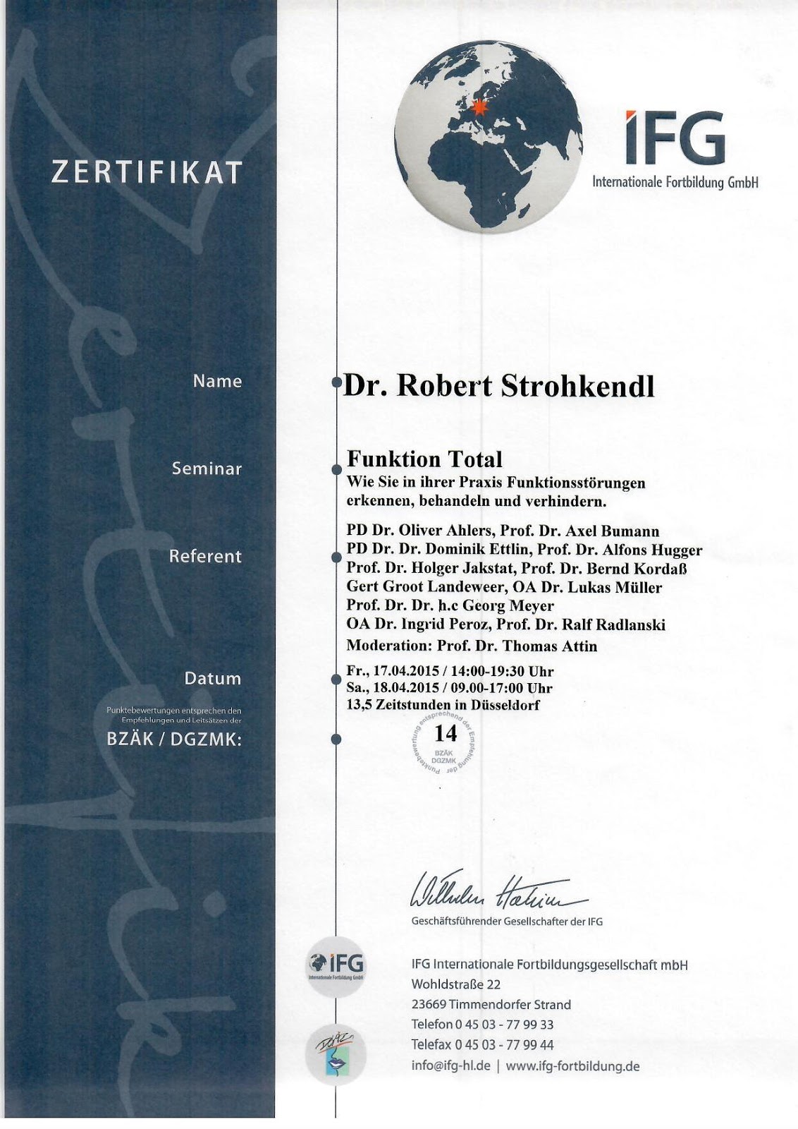 Funktion total 16FP 18. April 2015 0 Von Dr. Robert Dr. Strohkendl MSc. Ein hochkarätiges Update in der Funktionstherapie von IFG zum Thema „Wie Sie in ihrer Praxis Funktionsstörungen erkennen, behandeln und verhindern.